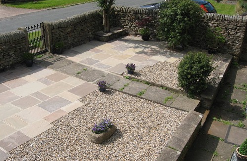 There are gardens to the front & rear of the property. The front garden area is largely paved & with tubs of flowers & shrubs. There's also a pear tree by the House itself. It also gets a lot of sun in the morning & early afternoon so it's a nice area to sit out & have a morning cuppa & even chat with passersby. The rear garden is much bigger with plenty of space to stroll about & a lawn that slopes down to a field. There are also a metal table with six chairs for your to sit out / eat on & enjoy the stunning view across the Dale.