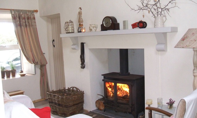 Inside the traditional fireplace is 'inglenook' type, however, this has been converted to suit a wood burning stove. In days gone by all family meals were cooked over this hearth.