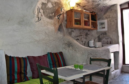Old style fully and recently renovated traditional cave, in a well- hidden peaceful canyon in Emporio village of Santorini. Experience living in a Cave, leading an agricultural life, hearing nature's sounds, being 10' min away from the beach!