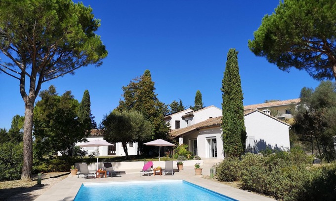 Traditional southern style villa with private large garden and swimming pool is located in Campagnan. Traditional southern style villa with private large garden and swimming pool provides accommodation, featuring TV, Private Pool, Child Friendly, among other amenities. This Villa features TV, Private Pool, Child Friendly, to make your stay a comfortable one.