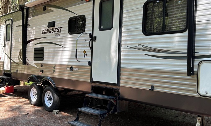 Nice trailer, built in heater and fan. Great for camping all season. Fits 8 people comfortably a lot of space and storage. It has a full size kitchen. Can not use shower. Will have to use campgrounds facilities. Toilet works fine. You will have to tow the trailer to your designated camp ground. Towing the trailer is available upon request for $2/km starting from where trailer is parked. To and from designated location. Goldstream Provincial Park,Barberton Provincial Park, Rathtrevor Beach Provincial Park.