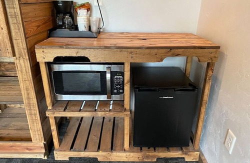 This is a private hotel room within Falls Market Inn. ADA accessible. King Size Bed, TV, Coffee Maker, Microwave, Mini Refrigerator
