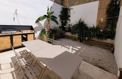 Come and discover this beautiful village house, completely renovated with quality materials, in the center of Villeneuve les Béziers. Typical village in the South of France, which is crossed by the famous Canal du Midi.