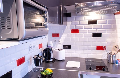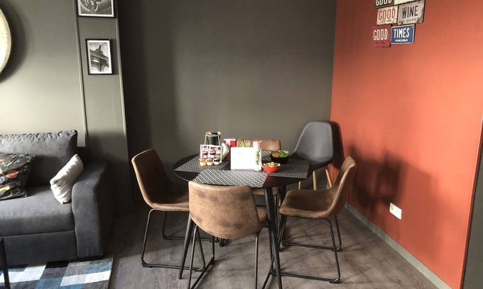 GeneralNumber of bedrooms - 1, Toilet paper, Free wired internet, Square meters - 50, Kitchen, No rollaway/extra beds, Wardrobe or closet, Iron/ironing board, Bed sheets not available, Fan, Toaster, Bed count minimum 5, Hair dryer, Free WiFi, Visual fire alarm, Number of bathrooms - 0.5, Square feet - 538, Coffee/tea maker, Shower only, Pets not allowed, Private bathroom, No cribs (infant beds), Ping - 15.12, Bed count maximum 5, Refrigerator, City view |