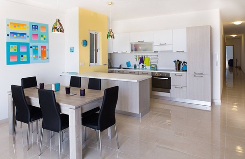 "TRANKWILLA“! New 2 bedroom self-catering apartment on the 3rd floor of a small complex with only 10 apartments. Large comfortable living-/dining area, very bright, with fully equipped kitchen incl. dishwasher. Electric stove for cooking so no need to change gas bottles as otherwise on Gozo.
