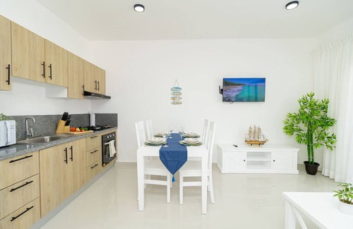 The apartment is situated in a quiet, secure residential area just minutes from the heart of town. You'll be within walking distance of local restaurants, cafés, markets, and bakeries, where you can enjoy fresh seafood, tropical fruit, and Dominican specialties. The nearby Bayahibe Beach and Dominicus Beach are perfect for swimming, sunbathing, or booking a boat tour to Saona Island or Catalina Island, two of the most breathtaking spots in the Caribbean.