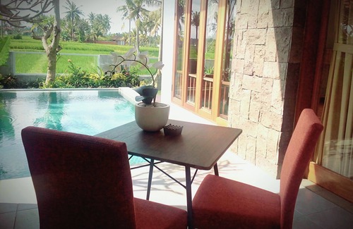 This villa is suit for solo, couple and honeymooner who is seeking for a quiet of countryside life. Surrounded by green rice field so you can experience the local farmers look aftering the rice field. Our friendly and profesional staff would gladly to assist you with all your needs to ensure your both enjoyable and memorable stay in Ubud -Bali. breakfast is included. Free shuttle to and from ubud center is provided. Welcome home far away home.....