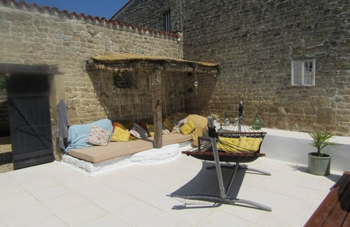 Enjoy exclusive use of a lovely 3 bed-roomed French farmhouse with an excellent outdoor living space. Ideal for families. There is a large courtyard with fig trees, bay trees , shrubs and plants. space in the drive for parking.