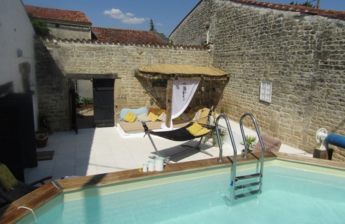 The heated pool area has decking and a paved area and features a shaded seating area and al fresco dining space. For those who prefer the shade - an adjacent lovely stone paved hanger, with rattan seating and dining table for more relaxed family meals. There is a full size table tennis table as well as a junior size table. Inside the house there is a large family kitchen with washing machine and dish washer, coffee machine . The space has been converted to accommodate dining for up to 8 people and is of french character. The living room is cosy and features a log burner and 2 sofas , TV with french channels and access to Netflix. The upstairs has three good size bedrooms. One with two twin beds , one with a double bed and a large master bedroom with on suite . there is also a family bathroom on this floor.The property is situated in the country side among fields of sunflowers and corn, but within easy driving distance to the seaside ( la Rochelle and Royan ) 45 mins away , or if you prefer, the pretty town of Cognac is only an hour away. Two minutes down the road is the pretty chateaux Dampiere -sur Boutonne , where you can eat and drink in the village restaurant. A five minute drive will take you into Aulnay where there are a range of bars and restaurants, post office and local markets.