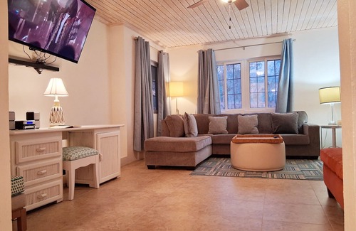 Suite's Pineapple offers lush garden views with native fruits when in season. Peaceful setting, perfect for enjoying nature and perhaps even sampling fresh tropical delights, mangoes, sapodillas and plums. Fresh air in such a setting enhances the very sensory experience. At night the sky is perfect for stargazing. Garden view of the sprawling backyard. Fully stock kitchen with a variety of cookware and appliances for any culinary tasks. Local restaurants and bars are 2 minutes away.