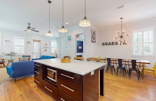Get the whole group together for a fun-filled getaway when you book your next trip to this family-friendly Seagrove home. This home will make it easy to slip into vacation mode by offering room for your entire group to enjoy the postcard-perfect beaches and sun-kissed local attractions. Set about half a mile from the sandy shores and mere steps from hiking paths that weave through Point Washington State Forest, this home will place all the fun at your fingertips. Easily reach the Santa Clara Beach access point, which is well-equipped with bathrooms, outdoor showers, and parking, and fantastic dining and shopping in Seaside. Kick back on the beach to soak in the sun, paddle through the waters of Eastern Lake, and hang out at the community pool in the afternoons. You can also drive less than six miles to Rosemary Beach to dive into the action or lounge on the sands at Alys Beach nearby.