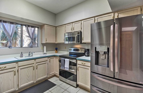 A stress-free stay in the Tucson area awaits at this inviting townhome in Green Valley. Nestled in the peaceful Cortina Villas complex, this vacation rental includes 2 bedrooms, 2 bathrooms, and community amenities fit for the whole family. Spend the day relaxing poolside, play a game of tennis, or golf the day away at San Ignacio Golf Club located just across the street. Whether you’re looking for outdoor recreation or just a relaxing place to call home, this abode offers all of that and more!