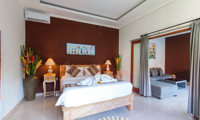 This Bali villa boasts 2 inviting bedrooms with 2 king beds. The charming and lovely property features 2 bathrooms equipped with shower, bidet, hair dryer, and bathtub. Kickback, relax, and enjoy everything Bali and our villa has to offer. Villa Maha is located on Jalan Raya Yudistira Selatan, Ubud, Bali. The villa is approximately 39 km from the airport and 3 km from the center of Ubud. The villa offers airport pick-up and drop-off at an additional cost.