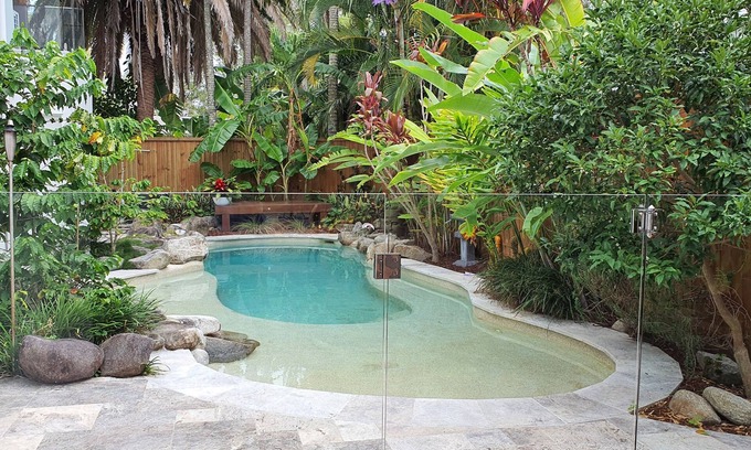 The glorious, tropical billabong swimming pool has two large, shallow beach areas that are wonderful for small children and will suit many people with a disability in a wheelchair. There's a multitude of health benefits to be gained by swimming in a magnesium pool and the step spa (air spa built into the stair) adds to the relaxation experience. The sunbathing pool deck under the shade of the palms and banana trees is a quiet place to rest or read.