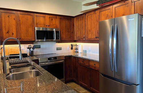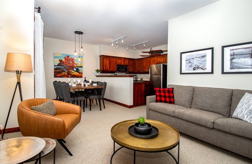 The master bedroom boasts a luxurious pillow-top king size mattress. The ensuite bathroom includes a jetted Jacuzzi tub where you can soak your muscles after a day of skiing, biking or hiking. The second bedroom holds two XL twin beds that can be arranged as a king size bed. The second bedroom also has a TV with cable and a connection for your own game console. The second bathroom offers a large shower.