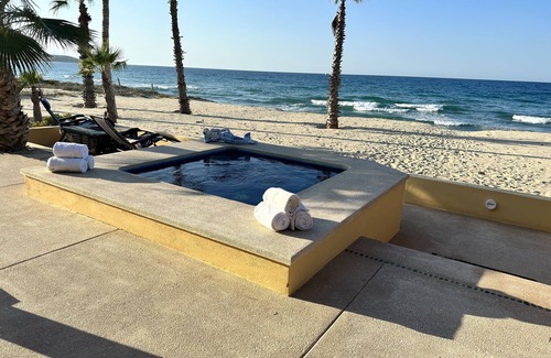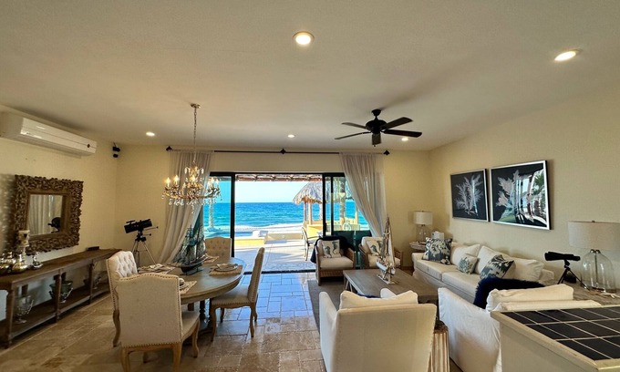 Nestled on a secluded beachfront with breathtaking ocean views, "Tranquil Palms Retreat" is a luxurious 3 bedroom, 2.5 bath haven that exudes peace and serenity. Surrounded by lush palms and endless horizons, this unique home is perfect for those seeking a private retreat. Designed to cater to all your needs, the property features, outstanding indoor-outdoor living spaces, an open plan, living and dining room, a gourmet kitchen, and high-end finishes throughout. Whether you want to soak up the sun on the expensive deck, or take a dip in the crystal clear waters of the ocean, tranquil, palms, retreat, offers the ultimate beachfront escape.