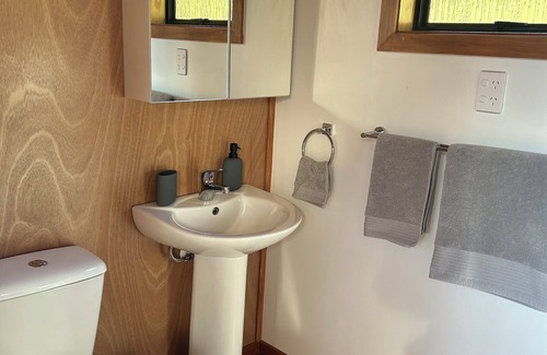 Cosy bedroom for couples, Great Shower, outdoor seating, River views and a private swimming hole. Quiet country life yet only 12 minutes to Richmond. Washing Machine, Fridge, Jug and Toaster, oven hobs and electric frying pan for cooking. Heatpump for heating or air conditioning. TV with a chromecast so you can stream from your device using the free wifi. Pets welcome. Fully fenced, private entrance with parking.