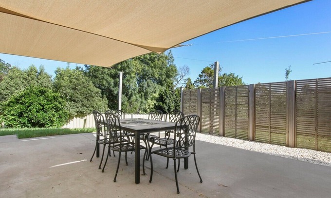 Tranquil Treasure is a peaceful retreat located near Metung, offering a relaxing escape with beautiful farm views and starry nights. This three-bedroom property accommodates up to six guests and features modern amenities such as a full kitchen, BBQ facilities, and outdoor entertaining area. Guests can enjoy fishing nearby or visit the Metung Hot Springs, just a short drive away. Pets are welcome, and the property is family-friendly.