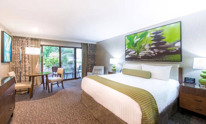 Escape to a serene oasis by Matadero Creek, where nature meets comfort. Just less than 2 miles from Stanford and near Downtown Palo Alto, this spacious room offers an amazing view of lush gardens and elegant oak trees. Enjoy eco-friendly toiletries, plush bathrobes, free breakfast, and parking. The perfect retreat for business, romance, or family fun in the heart of Silicon Valley.