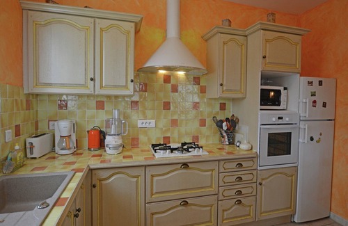 garage, garage, washing machine, heating(electric), terrace(roofed), garden(fenced), garden furniture, swimming pool(private, 7 x 4 m., opened from 1/2 May upto and including 1/2 Oct), boules court