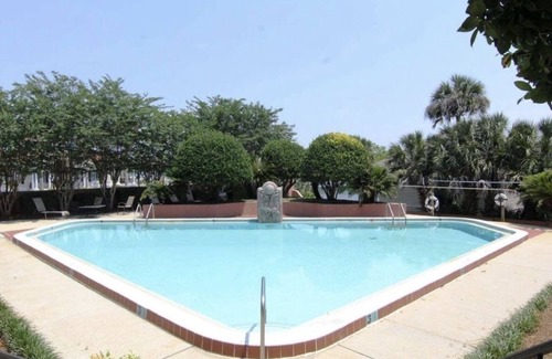 Spectacular water and pool views from the tastefully decorated 2nd story condo! Living/Diningroom with large table. An open plan with pass thru window to kitchen. Comfy Master Bedroom Suite! Beautful oak shaded grounds to walk or bike.