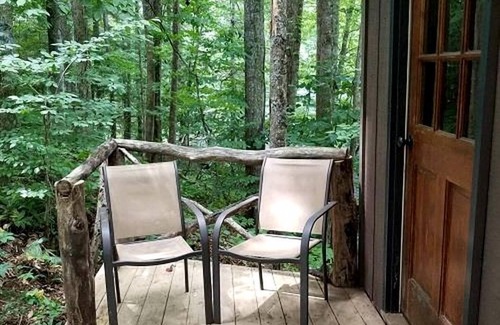 This retreat is a camping cabin at The Cabins at Healing Springs, which has a live tree in the center of the octagon shaped cabin. Tucked up high on the hillside with a flight of stairs to the secluded entry deck that looks out into the woods and a charcoal BBQ for your use. This is a primitive camping cabin, a true "glamping" experience, it is a primitive camping cabin without electricity or an en-suite bathroom. It does have Air Conditioning and propane heat, but it is a camping cabin. Do you need power? We do have an optional Portable Power Station for your devices and light. You have access to an indoor "bathhouse" located close by that features a sink, shower (hot water!), and flush toilet. It is furnished with a plush memory foam mattress on a platform bed. We provide sheets, pillows, blankets, and bath towels for this cabin.