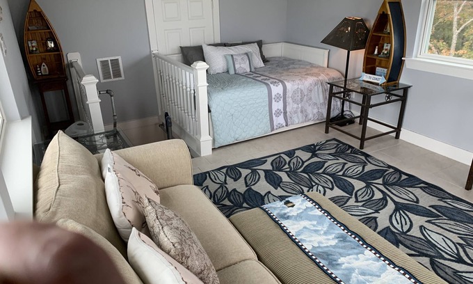-There is a self-inflating queen air mattress is in the downstairs bathroom linen closet. This is also where the extra towels / picnic blankets are located. You can set up the queen air mattress in the living room on first or second floor.