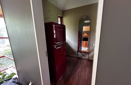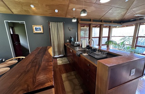 Despite its secluded setting, convenience is near. A short three-minute drive takes you to the Princeville Shopping Center or a ten-minute drive down to Hanalei town offering a variety of dining and shopping options. Your kitchenette includes a hot plate, air fryer/toaster oven, and all the necessary utensils needed to make a simple meal. There is a full fridge and freezer with ice treys. Three choices of coffee making. The bathroom has a roomy shower that feels like a gentle waterfall. There is no laundry on site but for longer stays a laundry service can be offered for an additional fee.