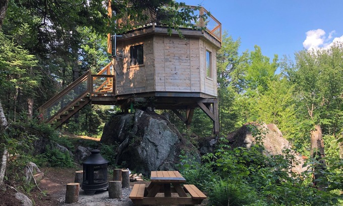 Treehouse #20 | The Rockhouse is located in Saint-Faustin-Lac-Carre. Treehouse #20 | The Rockhouse provides accommodation, featuring Child Friendly, Kitchen, Parking, among other amenities. This House features Child Friendly, Kitchen, Parking, to make your stay a comfortable one.