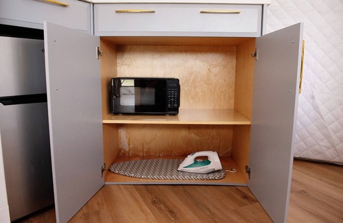 This dome offers amenities to keep you so comfortable you might forget you're "camping". A full soaking tub, a toilet, a kitchenette, a king sized bed, and WiFi. The kitchenette includes a microwave, coffee pot, mini fridge/freezer and all of the cutlery, dishes, mugs, and wine glasses you'll need. We also provide wine openers, lighters and utensils for the outdoor grill.