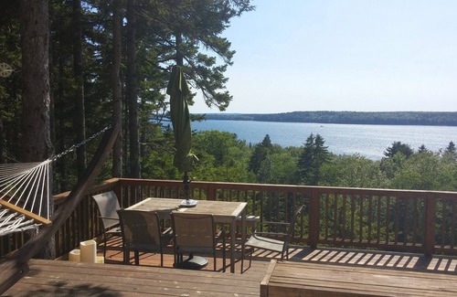 Treehouse with stunning ocean Views from expansive deck + Frontage on Forest l | Ski Chalet in Friendship