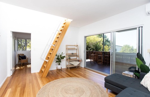 Nestled amongst the Treetops, our peaceful, 3 storey abode is only a 2 minute drive from the pristine surf beach & cafes of the idyllic coastal village of Pottsville. Beautifully styled & with an abundance of light & space, It's an ideal retreat for friends or family. 3 spacious bedrooms, 2 living areas and a rooftop 'observatory' where you can sit back, relax and enjoy sundowners with Ocean & Hinterland views. Come together to enjoy the Alfresco entertainment area & garden.