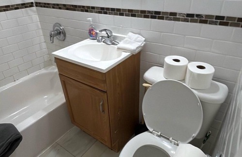 Spacious and welcoming, this 5-bedroom New York home comfortably sleeps families or small groups with a mix of king, queen, and double beds—plus a cozy sofa bed. Enjoy the convenience of a full kitchen, reliable Wi-Fi, and air conditioning throughout. With self check-in and plenty of space to unwind, it’s the perfect home base for exploring the city.