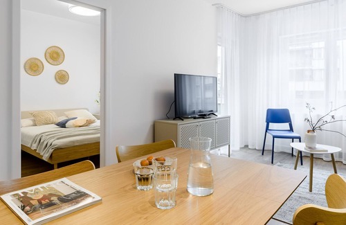 The apartment is serviced by professional cleaners and being disinfected before you check in. Bed linen and towels are treated with hypoallergenic cleaning products. We change bed linen and towels every 8 days when you decide to stay for a longer period.