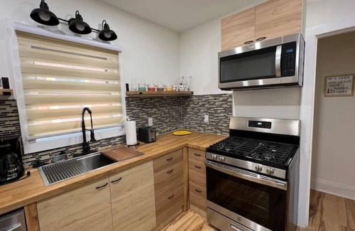 Historic charm and modern amenities. Private entrance, fully equipped kitchen, bedroom with a Queen size bed and sleeper sofa in the living room. WiFi. Smart TV. Steps from one of Cleveland's trendiest neighborhoods, shopping on West 25th. Very walkable! Short ride to Edgewater Beach, Downtown, theater district, sport venues and major hospitals. Great for traveling nurses, temporary insurance claims housing, or corporate rentals!