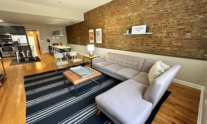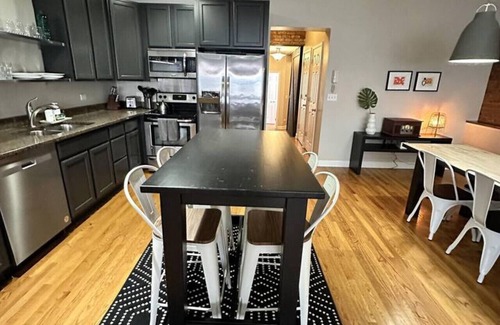 Located in trendy Wicker Park, our modern Chicago loft boasts open-plan living, exposed brickwork and plenty of room to accommodate larger groups. Walk down popular North Ave, Milwaukee Ave and Division St. to explore the many shopping, dining, and nightlife options We are centrally located, close to the Blue Line (airport and downtown access) and a block away from the Kennedy (I90/94 expressway).