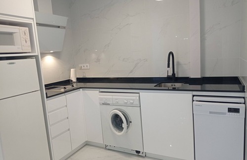 Coqueto estudio en cuarta planta con ascensor, de orientación fresca Norte, capacidad 2/3 personas, con un sofá-cama doble y un sofá-cama individual en el salón-comedor, pequeña cocina office con lavavajillas abierta al salón, y bonito baño con plato de ducha. Ofrece aire acondicionado en el salón. Terraza con toldos de orientación Norte con vistas al mar y a zonas ajardinadas. Estudio muy acogedor, ideal para familias, a un paso de la playa. Se admiten mascotas bajo petición, peso máximo 10 kg.