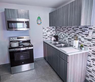 Featuring inner courtyard views, Tres Propiedades, Brisas del Mar l, Brisas del Mar II & Brisas del Mar lll in Fajardo offers accommodations and a terrace. El Yunque Rainforest is within 18 miles of the vacation home. The vacation home features rooms with air conditioning, free private parking, and free Wifi. The vacation home provides guests with a balcony, mountain views, a seating area, satellite flat-screen TV, a fully equipped kitchen with an oven and a microwave, and a private bathroom with a bath or shower and a hair dryer. A toaster and fridge are also available, as well as a coffee machine. Guests at Tres Propiedades, Brisas del Mar l, Brisas del Mar II & Brisas del Mar lll will be able to enjoy activities in and around Fajardo, like pub crawls. José Aponte de la Torre Airport is 6.8 miles from the property.