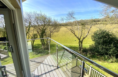 Spacious entrance hall. Large open plan living area incorporating a contemporary and stylish fully fitted kitchen with quartz worktops, gas hob and electric oven, microwave, dishwasher, washer/dryer and coffee machine. Dining area with seating for 8. Bright spacious living area with floor to ceiling patio doors leading to a private decking area with outdoor tables and chairs, with views through to the countryside. Two bedrooms; one with a king size bed and another with a single trundle bed, providing flexibility to be a single or twin bedded room. A separate downstairs bathroom with shower.