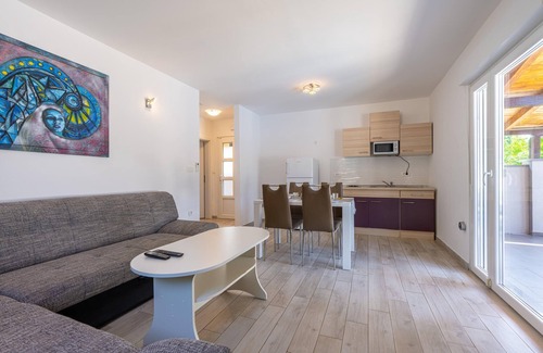 The second house (left) with a very similar arrangement of furniture quickly accustoms every guest to the comfort and warmth of the family home. Main common room consists of a living room, a dining area with a table and 4 chairs, and a mini kitchen where you can certainly prepare some more demanding dishes.
