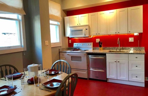* PLEASE NOTE: The commercial district is a block away from this apartment and is coming back to life! That includes bars frequented by local students - and means that on the weekends street traffic, music and bar noise can be loud into the early hours.