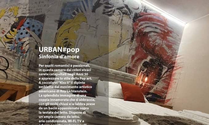 The space is designed by artist Corrado Pizzi. Each room traces a metropolitan itinerary of colourful urban scenarios from the 1930s to the present day in which the runners painted on the walls move between various artistic currents: from Banksy's graffiti art to Andy Warhol's PoP Art, concluding with a tribute to cinema, considered the seventh art. Guests can choose from five different rooms depending on their mood. Rooms and lighting are designed and created to stimulate the comfort of different moods: romantic and passionate, for the great traveller, for the dynamic and sporty and for those who prefer tranquillity and meditation. There is a common area where you can share culture and learn about the area, which is important for organising your holiday. The location is very convenient since the perfectly served area is only a few minutes from the historical and commercial centre of the city, which can be reached on foot or by scooter thanks to the proximity of the public parking station. Ideal for extended business stays and holidays within walking distance of the sea and beach facilities. Extra services are offered: breakfast in the room, laundry service, daily cleaning, rental and transfer services.