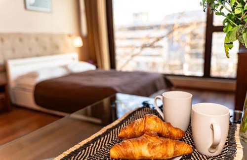 BathroomPrivate bathroom, Hairdryer, Toilet, Body soap, Shampoo, Toilet paper, Bathtub or shower, Shower, Free toiletries, TowelsMedia & TechnologyFlat-screen TV, TVGeneralTrash cans, Fan, Iron, Heating, Private entrance, Tile/Marble floorKitchenCleaning products, Stovetop, Kitchenette, Washing machine, Dishwasher, Electric kettle, Dining table, Microwave, Wine glasses, Refrigerator, KitchenwareOutdoorsPatioViewView, City viewLiving AreaDining areaBedroomLinens, Wardrobe or closetAccessibilityAccessible by elevator, Upper floors accessible by elevator, Entire unit wheelchair accessibleBuilding CharacteristicsDetached, Private apartment in buildingRoom AmenitiesSofa bed, Drying rack for clothing, Non-feather pillow, Socket near the bed, Clothes rack |