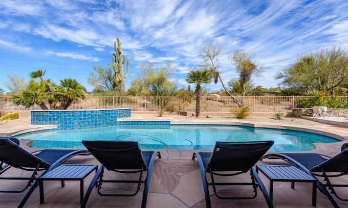 Troon North Beautiful Home on the Golf Course! is located in Troon North. Troon North Beautiful Home on the Golf Course! provides accommodation, featuring Balcony/Terrace, Wellness Facilities, Guest Services, among other amenities. This House features Balcony/Terrace, Wellness Facilities, Guest Services, to make your stay a comfortable one.