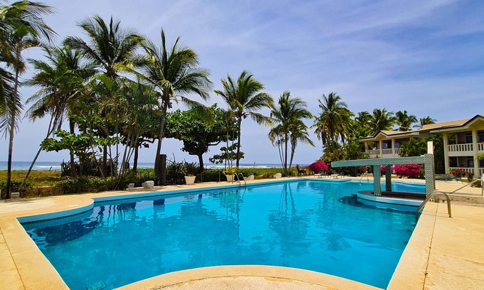 Gorgeous beach front condo with pool and swim up bar located on Junquillal Beach, about 30 minutes south of Tamarindo. This is a ground floor, corner unit, closest to the ocean so you have stunning views of the beach and ocean from the guest bedroom, living room, kitchen and outdoor terrace. The property also features two outdoor showers and two outdoor BBQ's. Enjoy the sounds of nature around you including howler monkeys, tropical birds and of course the crashing waves of the ocean. It's time to relax and unwind. Paradise is calling! If you are seeking adventure, there are plenty of surf breaks to choose from, swimming, boogey boarding, snorkeling, horseback riding, golf, mountain biking, ziplining, eco tours, volcano climbs, and coffee farm tours. We advise renting an SUV or four wheel drive vehicle as the road conditions vary from dirt to gravel. In the rainy season there will be places that gather water and need to be crossed. All part of the adventure! Book your favorite airline to land at the Liberia, Costa Rica Airport. The condo is about a 90 minute drive from the Liberia, Costa Rica airport.