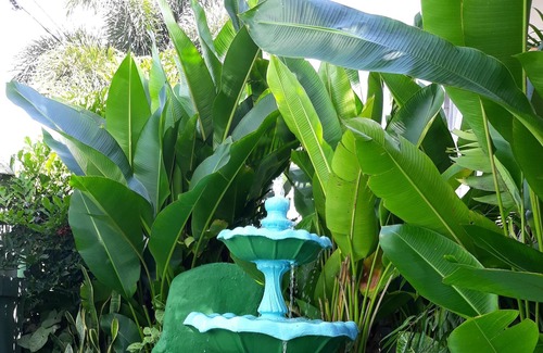 Tropical Petal is a beautiful ground floor rental apartment situated on the west coast. Its private entrance leads into a relaxing setting and comes with a kitchenette , dining and a comfy queen-sized bed. It is surrounded by tall golden palms, colorful plants and a waterfall filled with talapia fish.