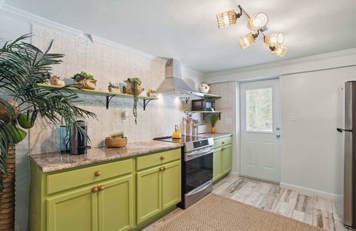 This communal space is shared with two other Suites, our Treehouse and Peach Retreat, and an RV pull-in site that can be reserved all-together for an exclusive private resort experience accommodating 12 plus the RV hook up and a games room. Message us to inquire how!