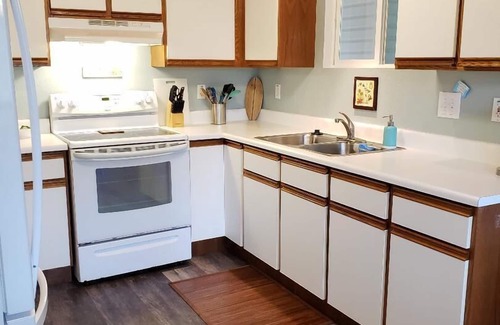 We have an amazing Hale for your tropical paradise getaway. This clean, quaint, tropical getaway is in the perfect location to explore the East side of Hawaii. Whether you enjoy Hiking, Volcano exploring, Water Falls, Snorkeling, Kayaking, or what ever you enjoy, this Hale is the perfect place to come home to relax, BBQ, and unwind from a day of exploring everything the Big Island has to offer. We offer a full kitchen, BBQ, Washer Dryer, 1 King bedroom, 1 Queen bedroom, 1 Full Bathroom with a Half Bath in the Laundry Room in the Carport. Also, mini split AC have been install in every room to keep the whole house nice and cool. We have installed an outdoor shower for your enjoyment. The property sits on a 1/4 acre of tropical plants, palms, avocados, and bananas. The house sits back from the street. It is only 7 blocks from the ocean approx. 1/4 mile. Explore the town of Pahoa with very good restaurants, a Farmer's market every Sunday, Malama Grocery Store, and Gas Station only 6 miles away. We have a minimum night stay of 3 nights, maximum stay of 14 days.
