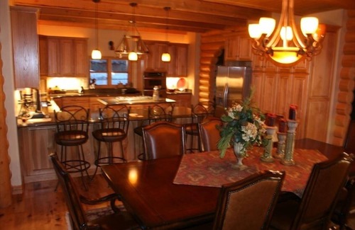 This luxury cabin is filled with amenities to make your stay perfect in every way. The master bedroom has a jetted jacuzzi tub for relaxing plus there are 2 steam showers and a sauna for warming up after a day on the slopes.