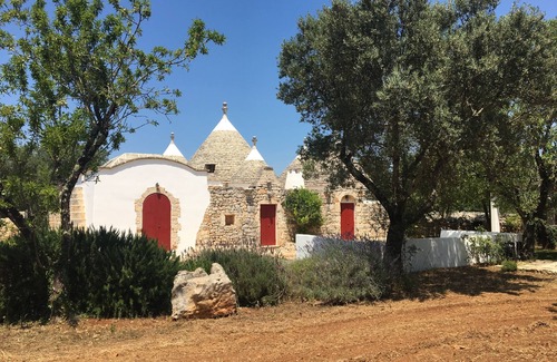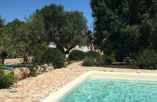 Sophisticated trullo, consisting of 5 cones and a renovated lamia, 3 bedrooms, two bathrooms, two living rooms with sofa bed, a kitchen and a magnificent outside for outdoor dining, resting on the beautiful cushions of the brick sofas and a swimming pool between the olive trees obtained in an ancient "iazzo".